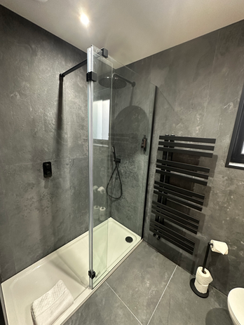 Two additional bedrooms with modern ensuites, sleeping six further guests, complete the accommodation inside the farmhouse. Finally, a separate exit from the living room leads to the outdoor hot tub, tucked privately into the corner of the garden beneath two acres of woodland—an idyllic spot to relax and absorb the peaceful rural surroundings.